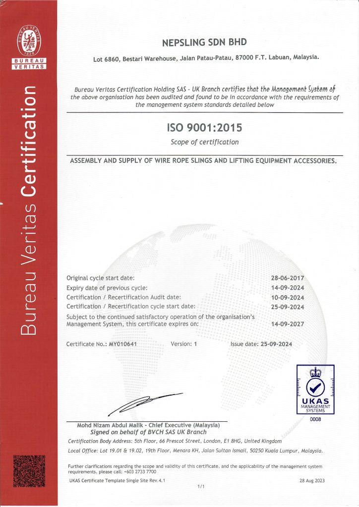 Nepsling Sdn. Bhd. was incorporated on 28th July 2011, with supplying lifting products into the high demand of Oil & Gas industries. Started up with fabrication and assemble of rigging and lifting accessories, we had developed our market and provide servicing, load test and spooling to meet client requirement. With our excellent reputation over the years, we have been able to achieve our customer’s satisfaction with many kind of quality product and services.